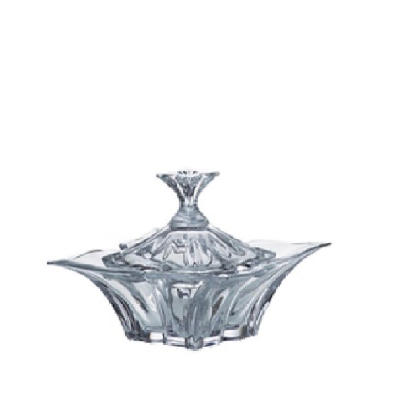 Finezyjna bombonierka, która będzie się pięknie prezentowała na stole. Wykonanie szkło krystaliczne. Wysoka jakość i transparentność