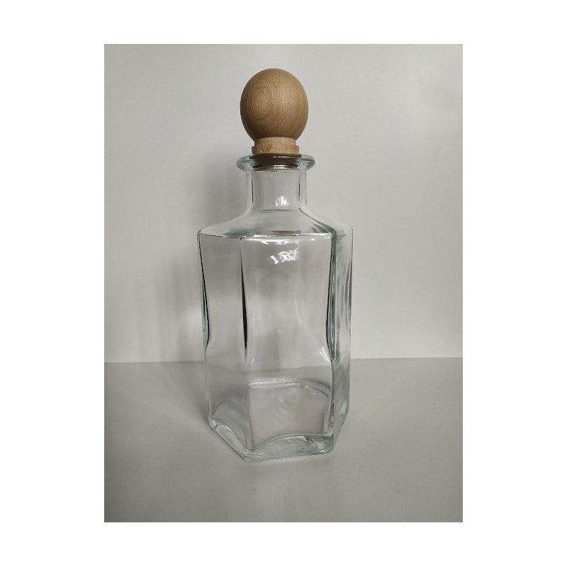 Karafka wykonana ze szkła przezroczystego , zatyczka korek drewniany .