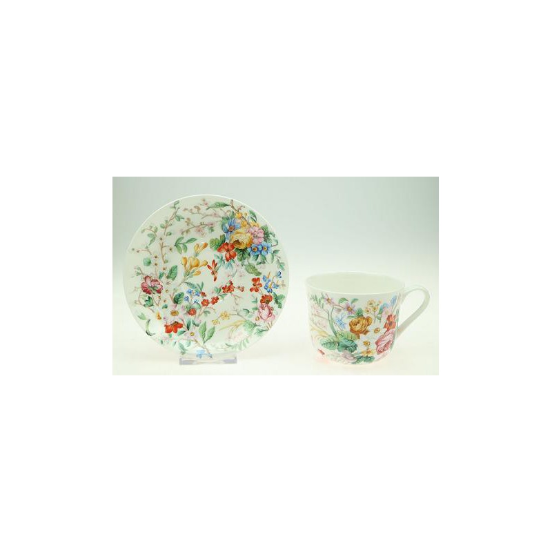 Dekorowana filiżanka o pojemności 370 ml ze spodkiem 17 cm. Wykonana z dobrej jakości porcelany kostnej "Fine Bone China"