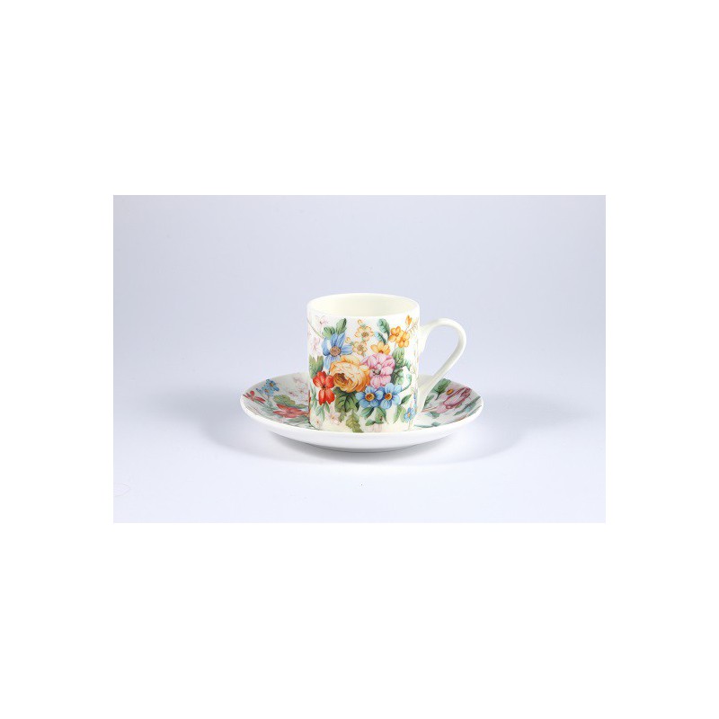 Dekorowana filiżanka espresso o pojemności 90 ml ze spodkiem . Wykonana z dobrej jakości porcelany kostnej "Fine Bone China"