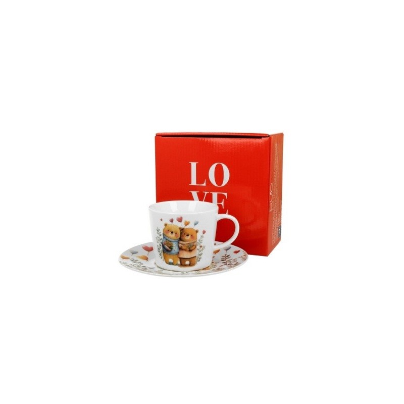 Zobacz większe Filiżanka ze spodkiem MISIE 2 wykonana z porcelany New Bone China, charakteryzującej się elegancką i naturalną kremowo - białą barwą z delikatnym połyskiem i wyjątkową wytrzymałością.