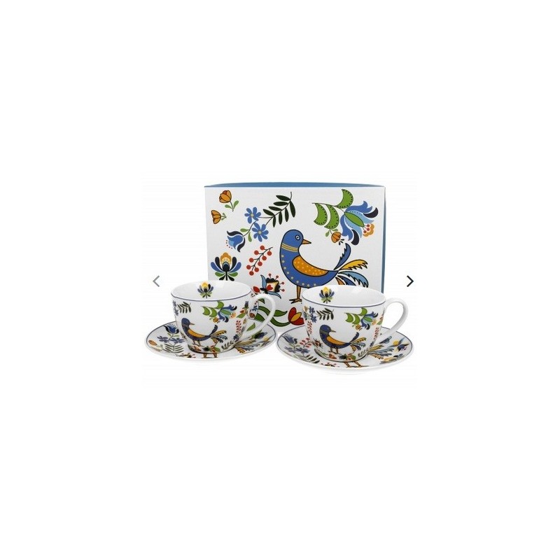 Zobacz większe Komplet dwóch filiżanek ze spodkami PTASZEK KASZUBSKI wykonana z porcelany New Bone China, która charakteryzuje się naturalnym kremowo-białym kolorem z delikatnym połyskiem oraz wyjątkową wytrzymałością i trwałością.