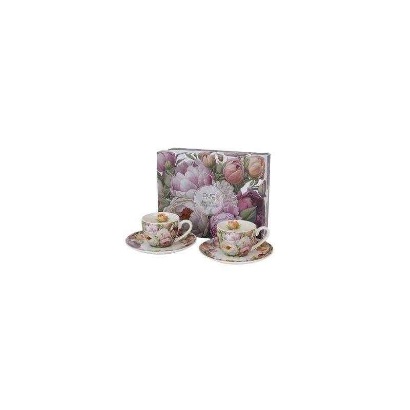 Zobacz większe Komplet dwóch filiżanek do espresso ze spodkami NENUFARS, wykonany z porcelany New Bone China, charakteryzującej się elegancką i naturalną kremowo - białą barwą z delikatnym połyskiem, a także wyjątkową wytrzymałością.