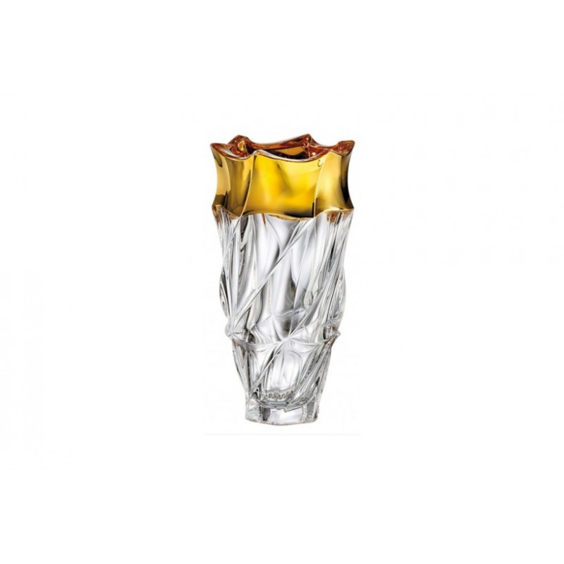 Zobacz większe Kryształowy wazon 330 mm została wykonan z najwyższej jakości kryształu. Szkło charakteryzuje się nienaganną przejrzystością oraz wzorami, które dopasują się zarówno do tradycyjnego, jak i nowoczesnego wnętrza. Kryształowy wazon pakowany jest w ozdobne pudełko, idealnie sprawdzi się w roli prezentu jako dekoracja. Użyto do zdobienia złota 24K.