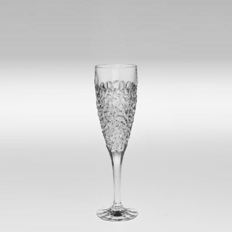 Zobacz większe Kieliszek Nicolette marki Bohemia, o pojemności 180 ml, idealnie nadaje się do serwowania szampana. Jego unikalny design przywołuje skojarzenia z zamarzniętą wodą zmrożoną przez mróz.