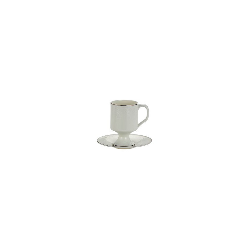 Zestaw dwóch kubków ze spodkami wykonanych z wysokiej jakości porcelany kostnej zdobione motywem kwiatowych ornamentów. Zapakowane w prezentowe pudełko.