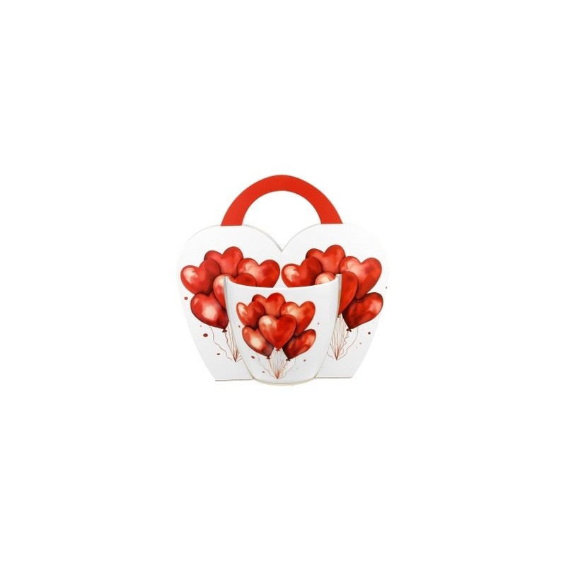 Linia zdobiona motywem soczyście czerwonych balonów w kształcie serc.