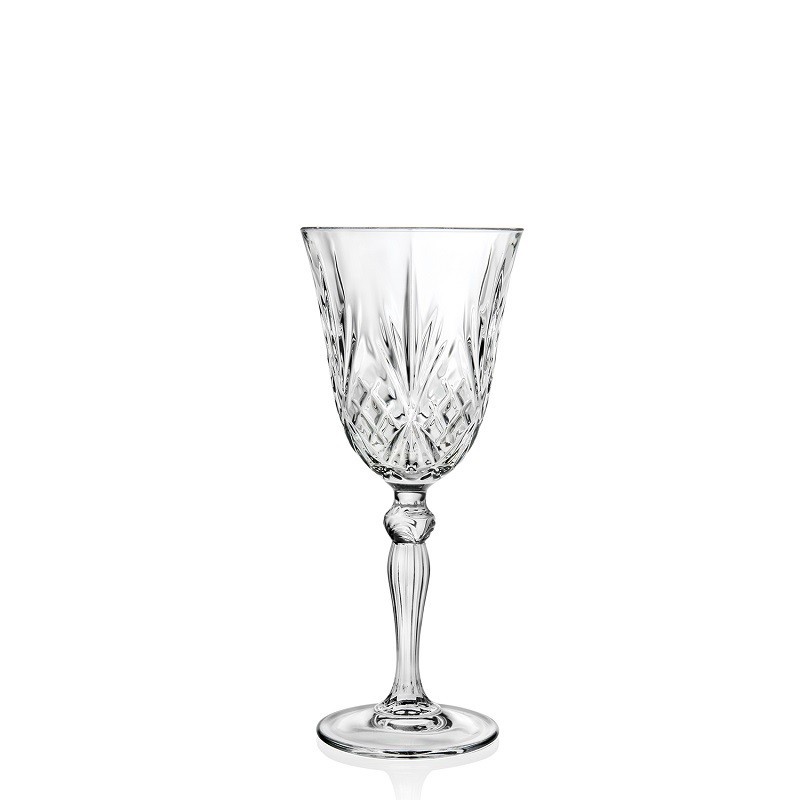 Kieliszki do wina, wody zostały wykonane z wysokiej jakości szkła kryształowego, ekologicznego(w 100% nadaje się recyklingu). Szkło kryształowe marki RCR jest idealnie przejrzyste, wyjątkowo błyszczy i wydaje przyjemne dźwięki np. podczas toastu. Kieliszki przeznaczone są do wina białego lub do wody.
