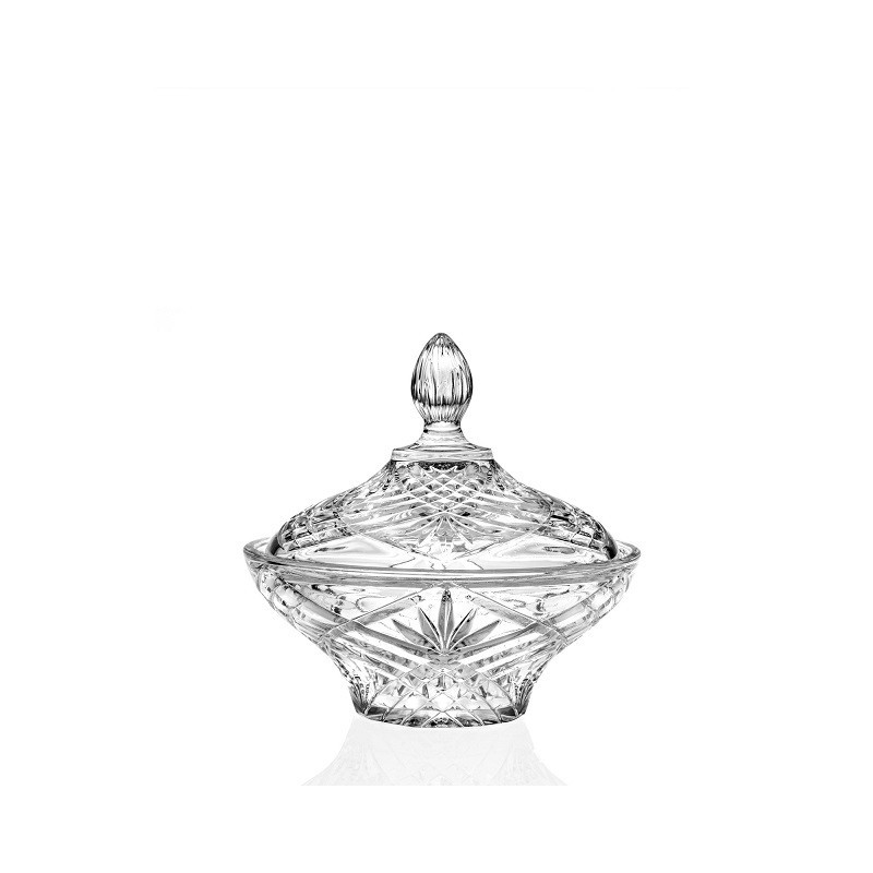 Zobacz większe Wysokiej jakości Miseczka na słodycze z przykrywką Melodia 18 cm, wykonana ze szkła kryształowego z kolekcji Luxion Ecocrystal – marki RCR. Luxion Ecocrystal to unikalna formuła składająca się z najwyższej jakości składników, nie zawierające ołowiu. Miseczka idealna do serowania ciasteczek, czekoladek, cukierków. Doskonale sprawdzi także do podawania słonych przekąsek jak precelki czy orzeszki a także różnego rodzaju bakalii. Świetnie sprawdzi się jako prezent.