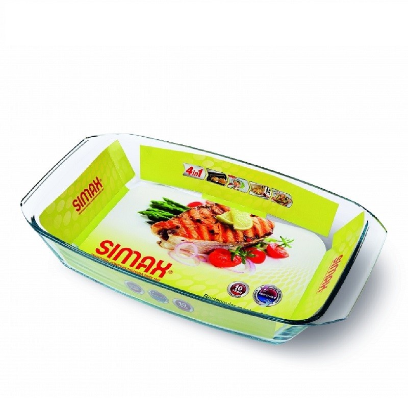 Praktyczna brytfanna wykonana z wysokiej jakości żaroodpornego szkła Simax, o odporności na temperatury od -40 ° C do +300 ° C. Idealna do wypieku, duszenia i pieczenia. Nadaje się do wszystkich rodzajów piekarników, zmywarek lub do przechowywania żywności w lodówce. Wykonana jest ze szkła nadającego się do powtórnego przetworzenia, nie zawierającego kadmu ani ołowiu. Gorącą należy powoli schładzać. Myć materiałami nieścieralnymi.
