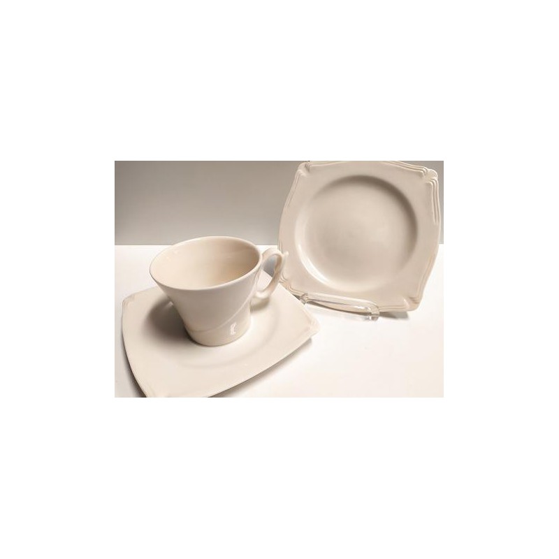 Porcelana włoskiej firmy WALD o specyficznej strukturze. Krótkie serie produkcyjne czynią kolekcję wyjątkową i ekskluzywną. Zestaw składa się z 6 filiżanek poj.200 ml, 6 spodków 16,5 cm oraz 6 talerzyków deserowych 17.5 cm.