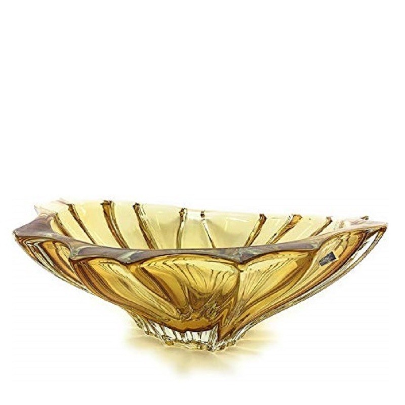Zobacz większe Idealny prezent. Wykonana ze szkła kryształowego bursztynowa misa 330 mm jest dla kogoś kto szuka pieknej i niepowtarzalnej dekoracji wnętrza pomieszczenia lub sposobu na ekspozycję, podanie poczęstunku.