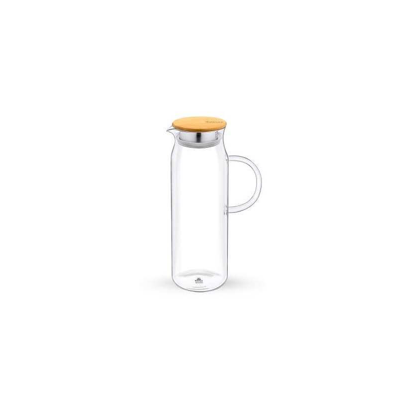 Dzbanek posiada szczelną pokrywę bambusową z uszczelką. Na stalowym kołnierzu umieszczono ograniczniki przepływu, które zatrzymają wewnątrz lód oraz kawałki owoców.